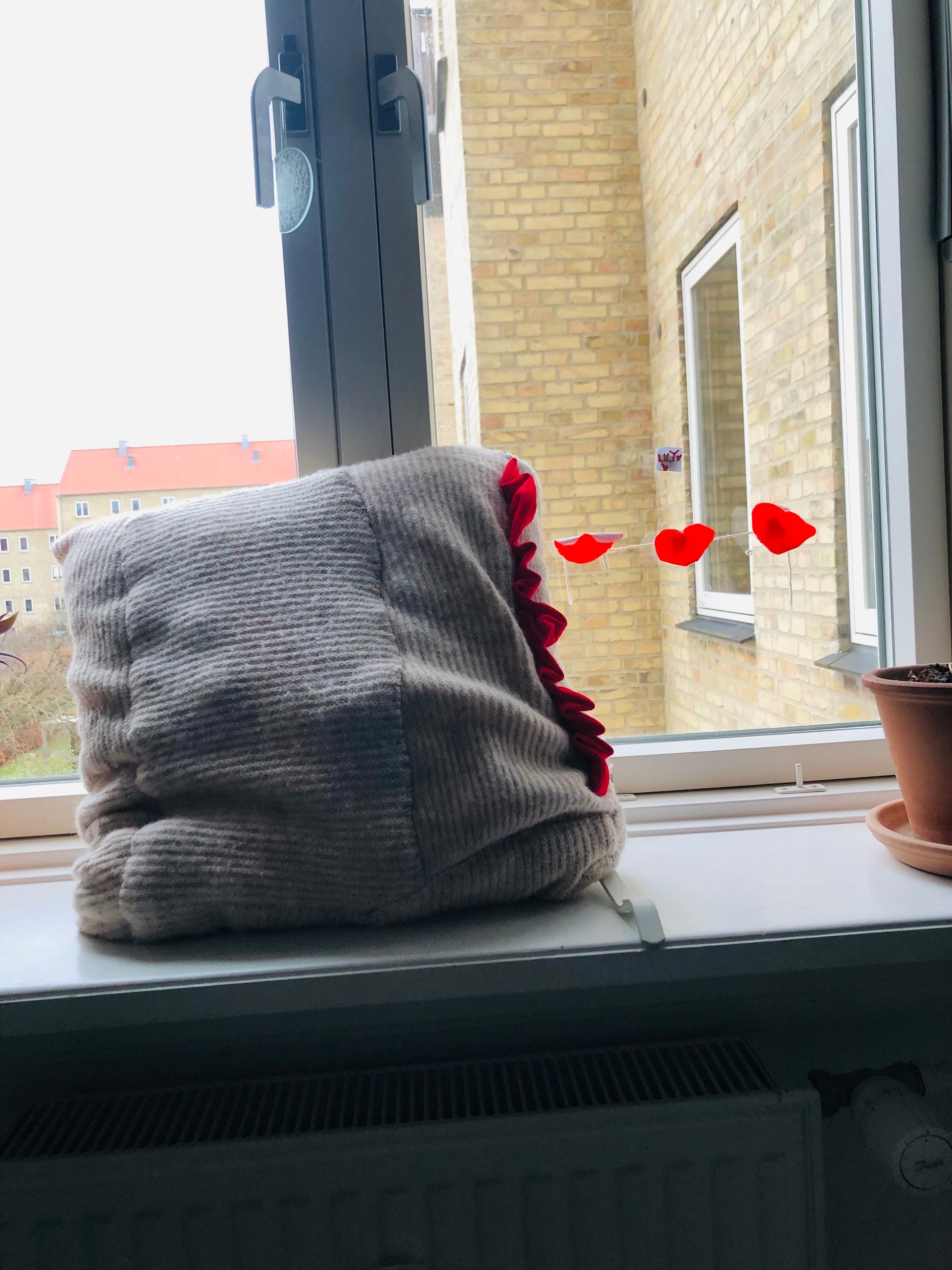 ほとんど手縫いで縫い上げたクッションカバーです🧵
