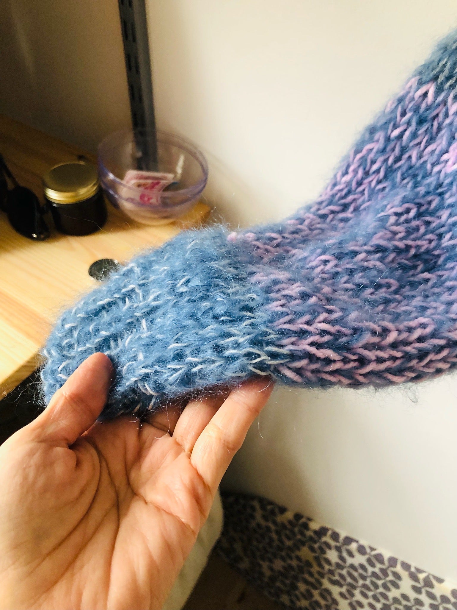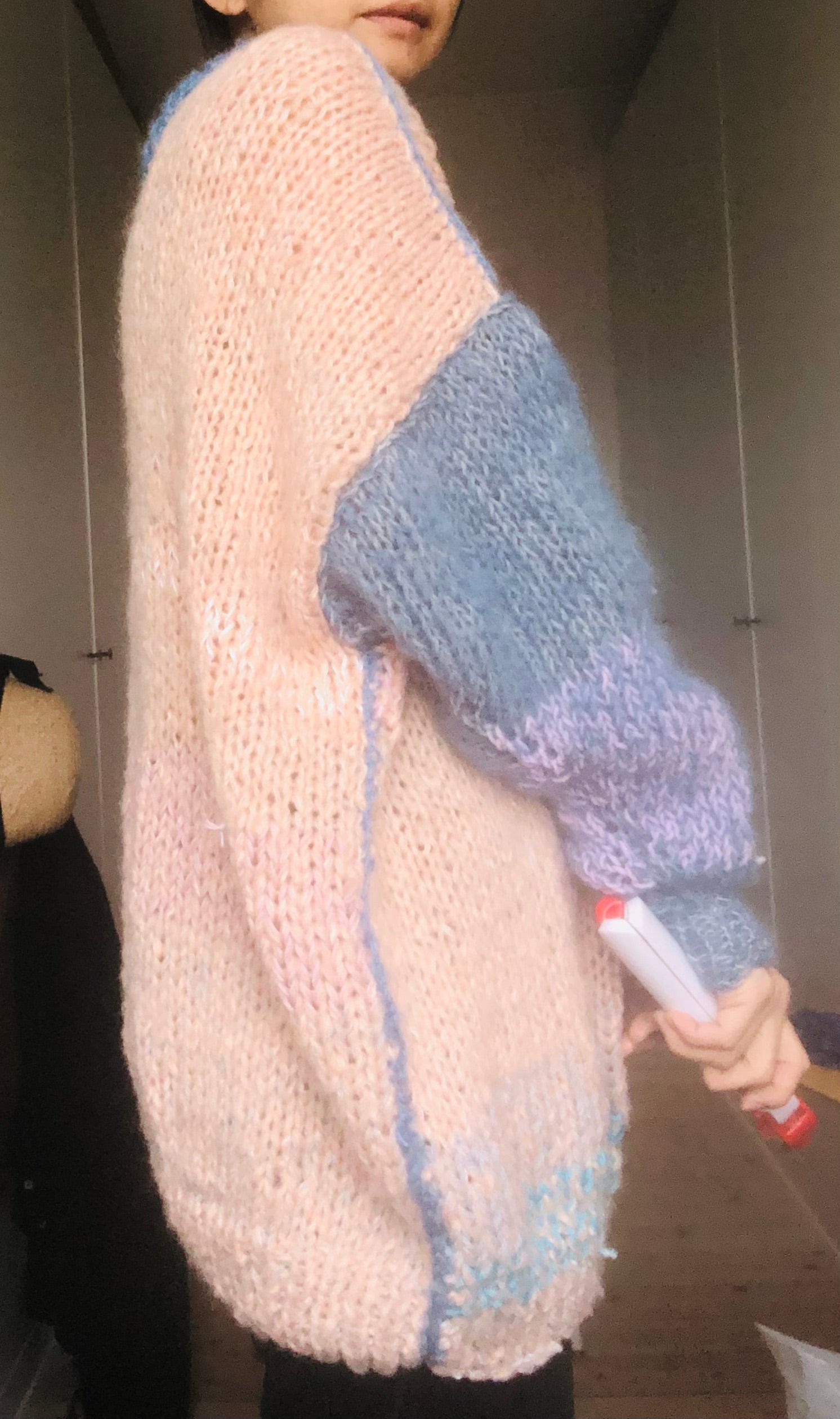 It's a mix of hand-spun yarns❤️It's a fun sweater with a variety of patterns. Big silhouette‼️