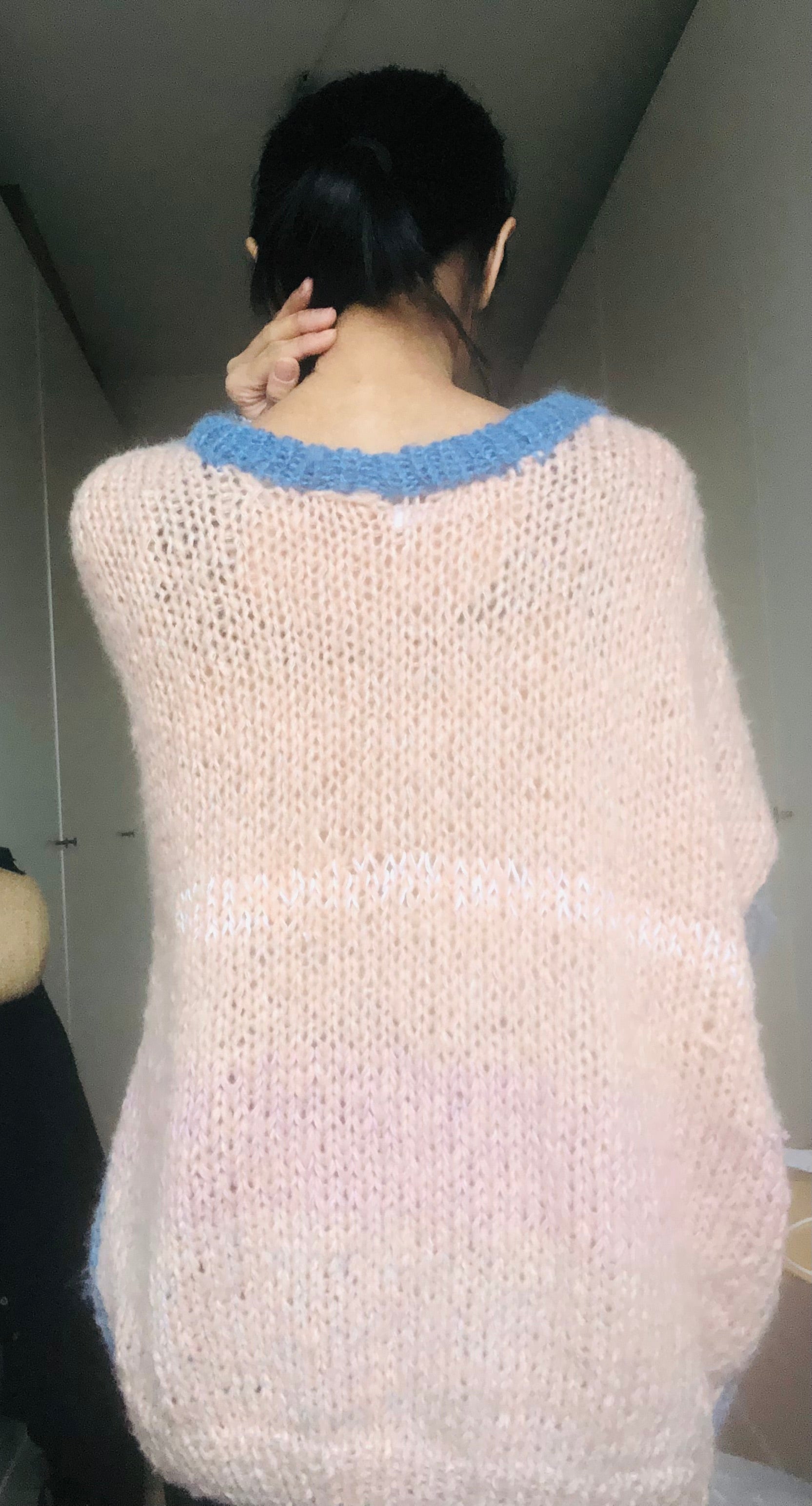 Sweater Hand Knitted Slow Fashion Fancy Yarn Oneofakind Short Mohair 2187