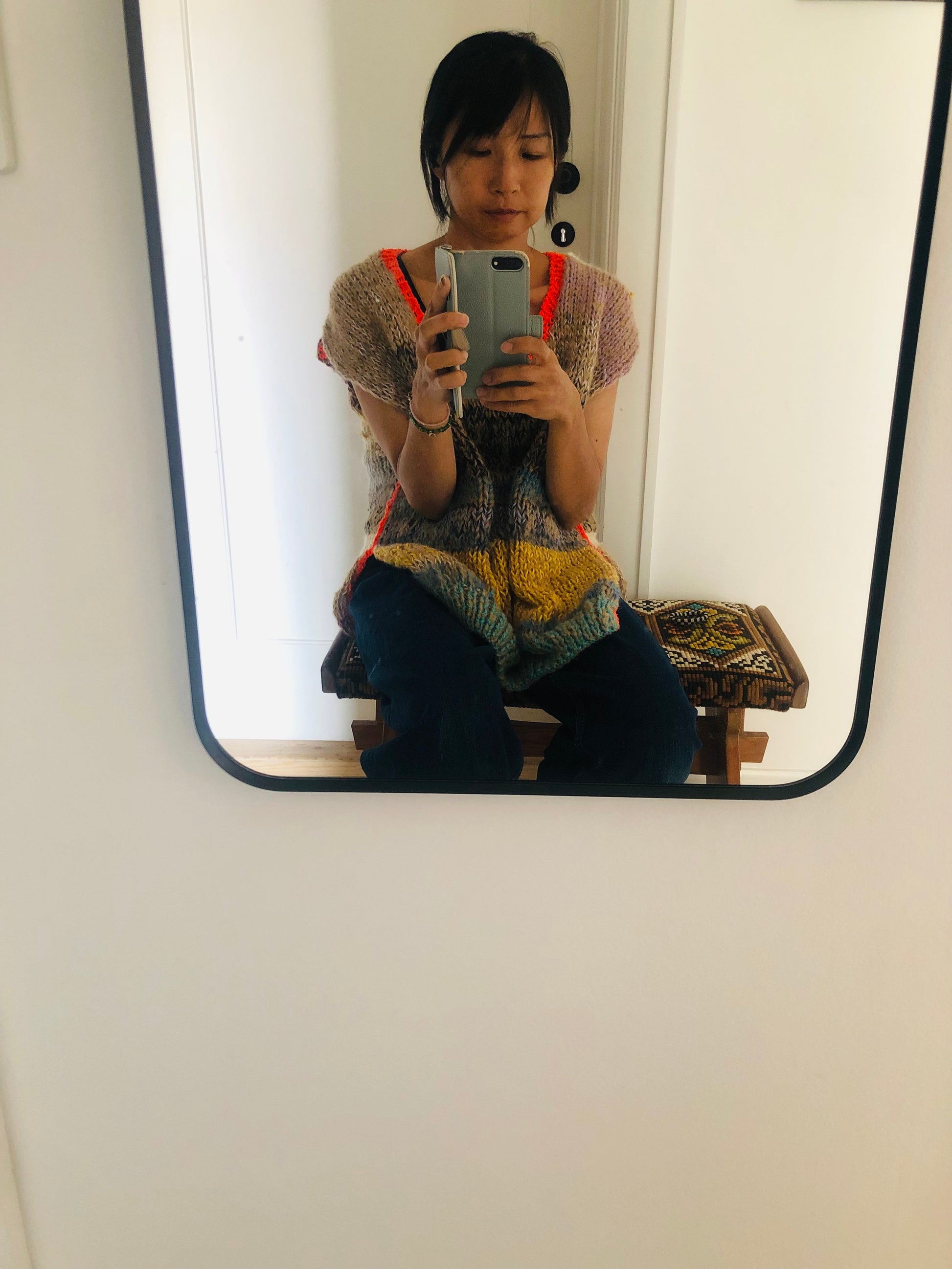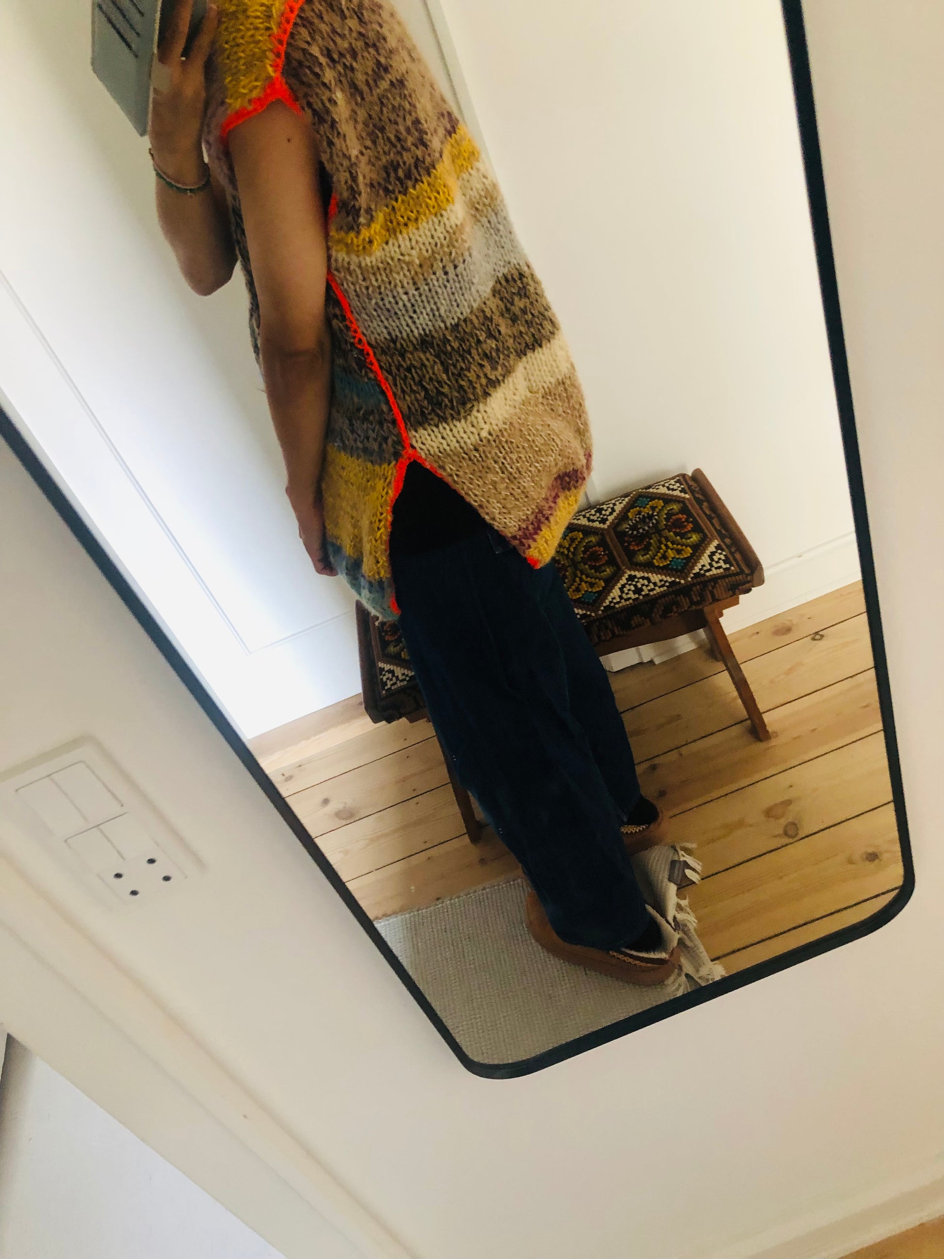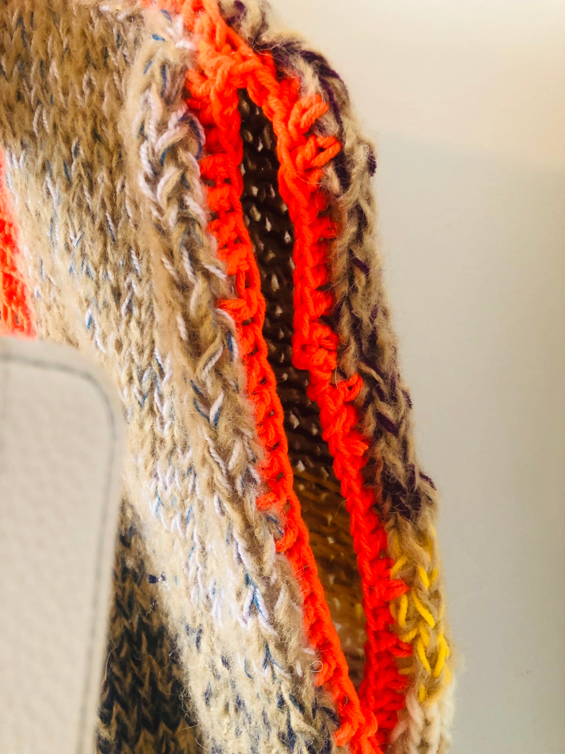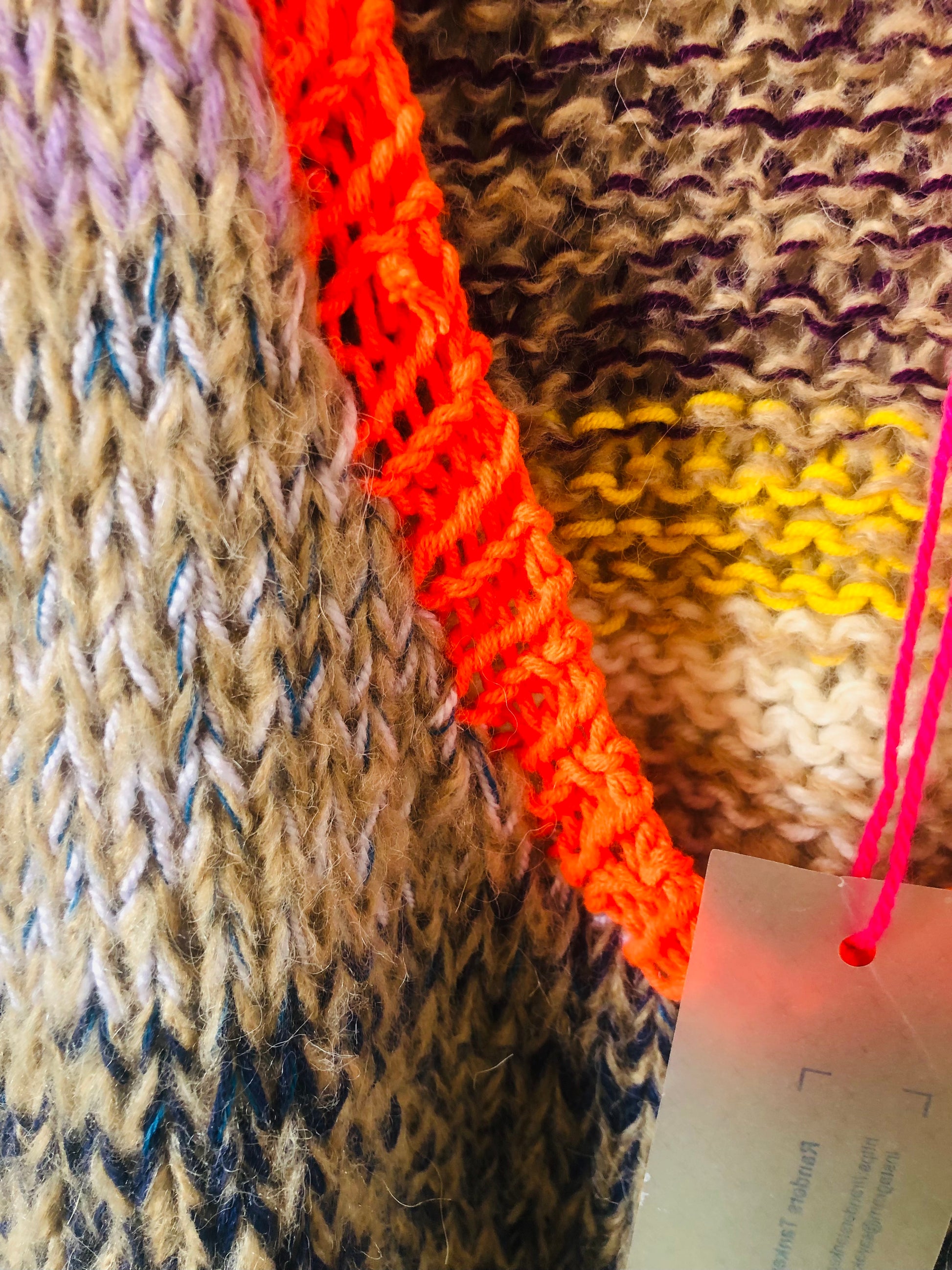 I used a variety of yarns to knit a one-of-a-kind sweater.