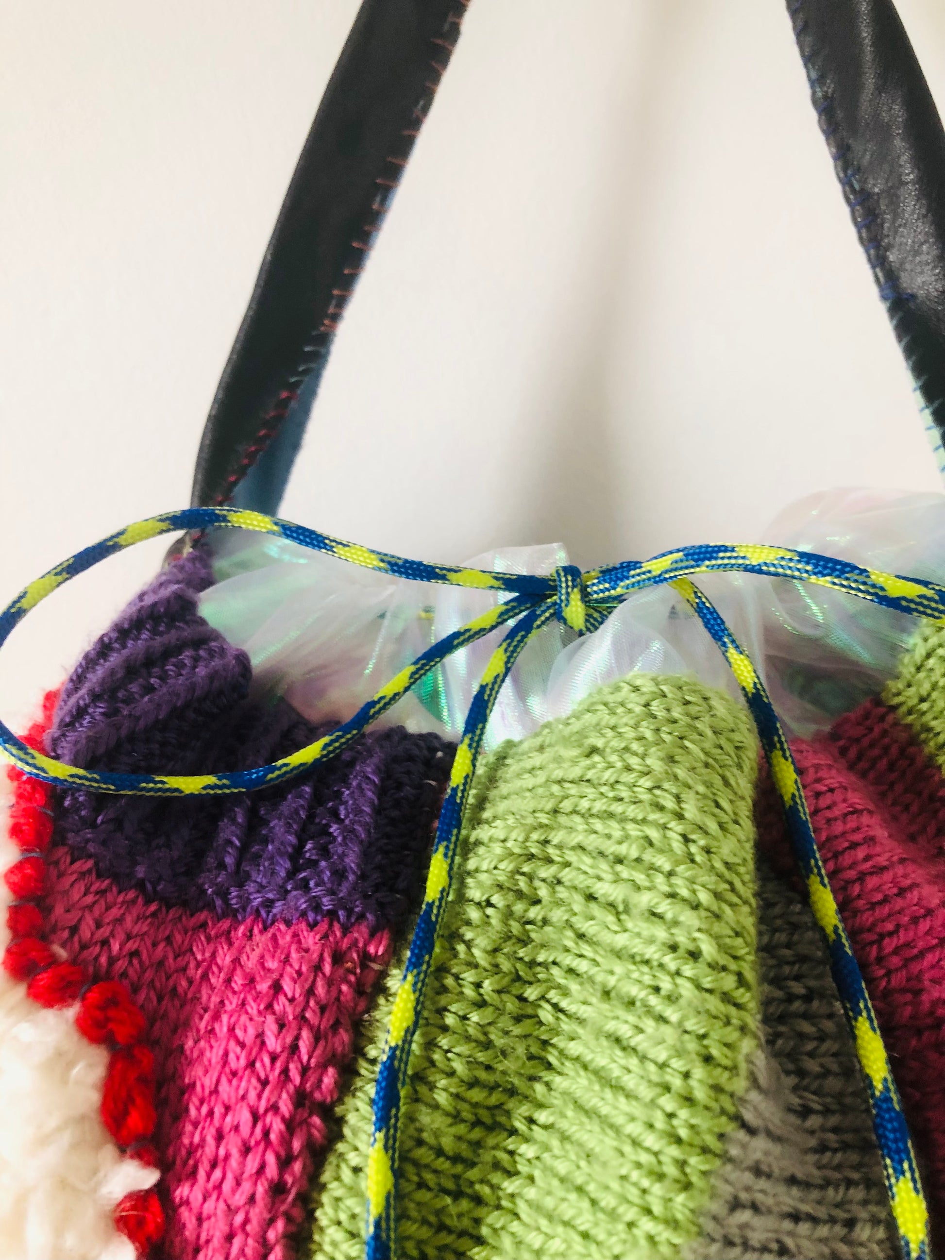 Hand-sewn fabric drawstring bag, slow fashion, handmade, 2309