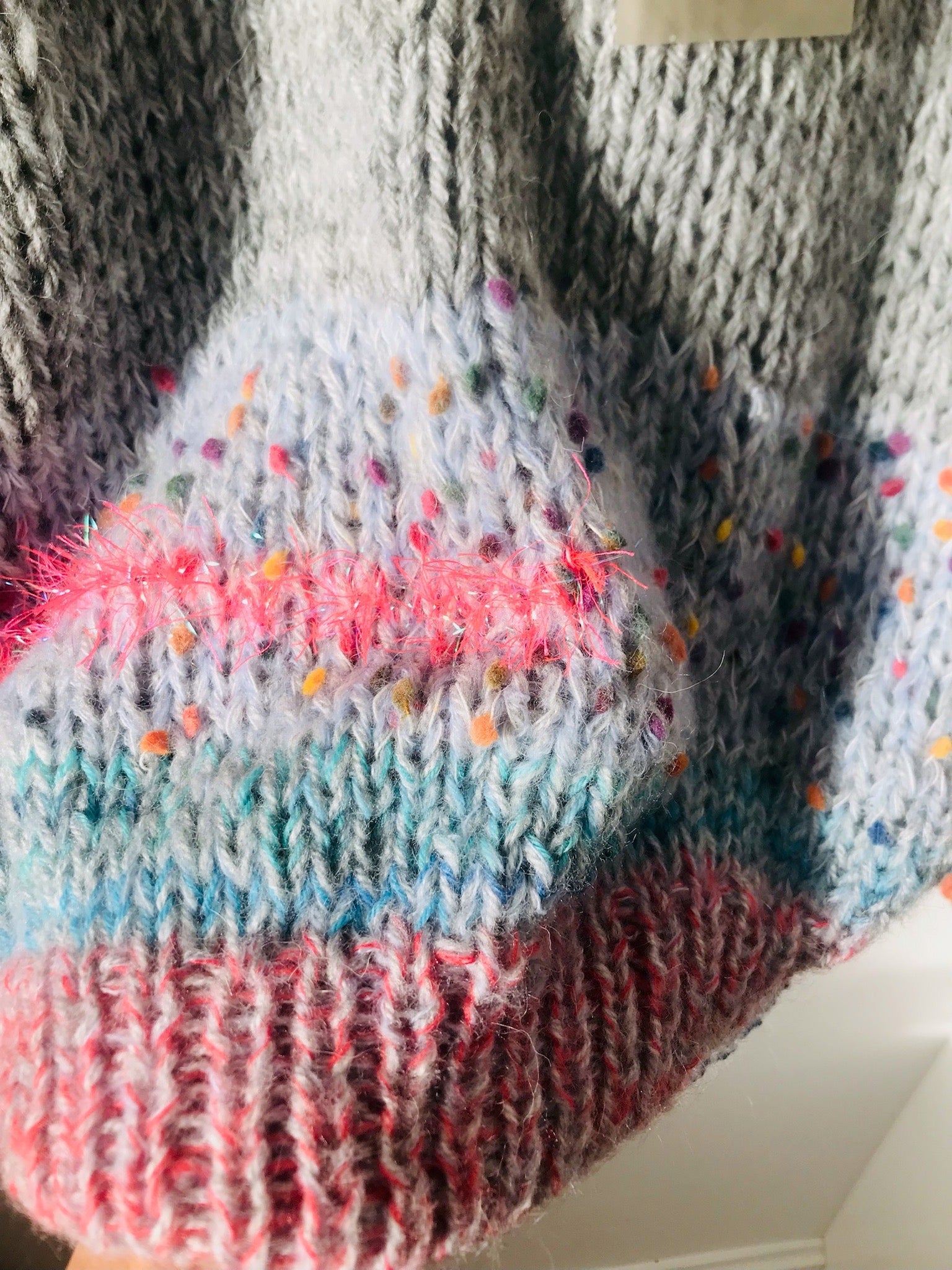 様々な糸を使い、世界に一つのセーターを作りました。