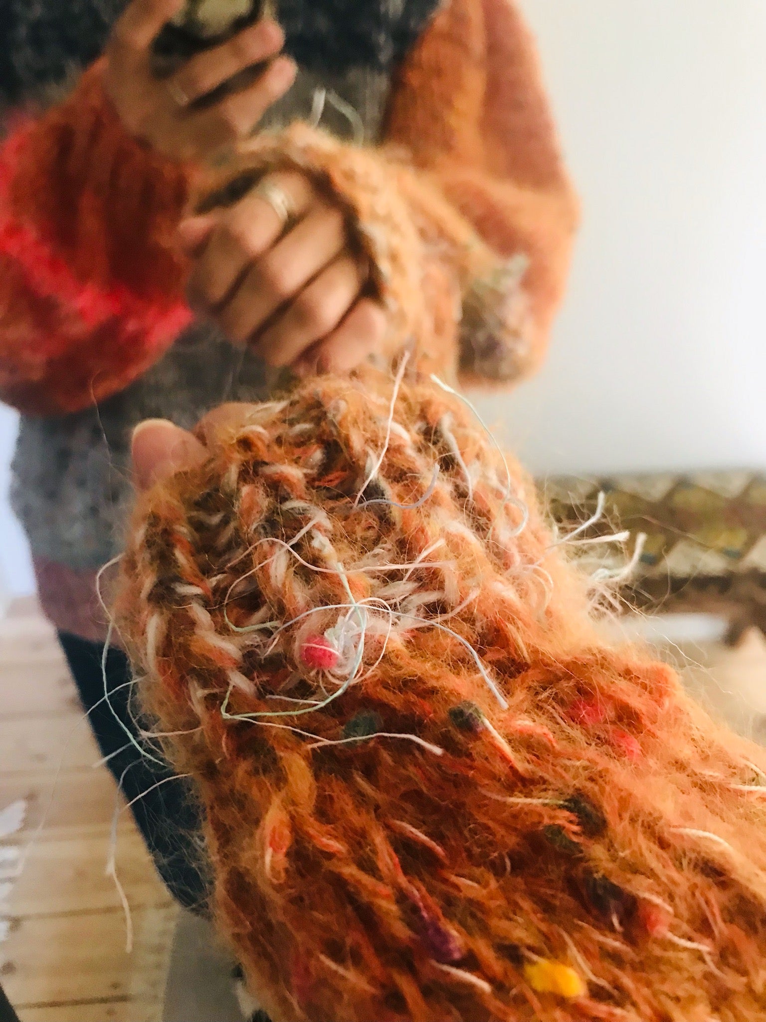 セーター 手編み スローファッション ファンシーヤーン oneofakind ショート丈 モヘア 2104