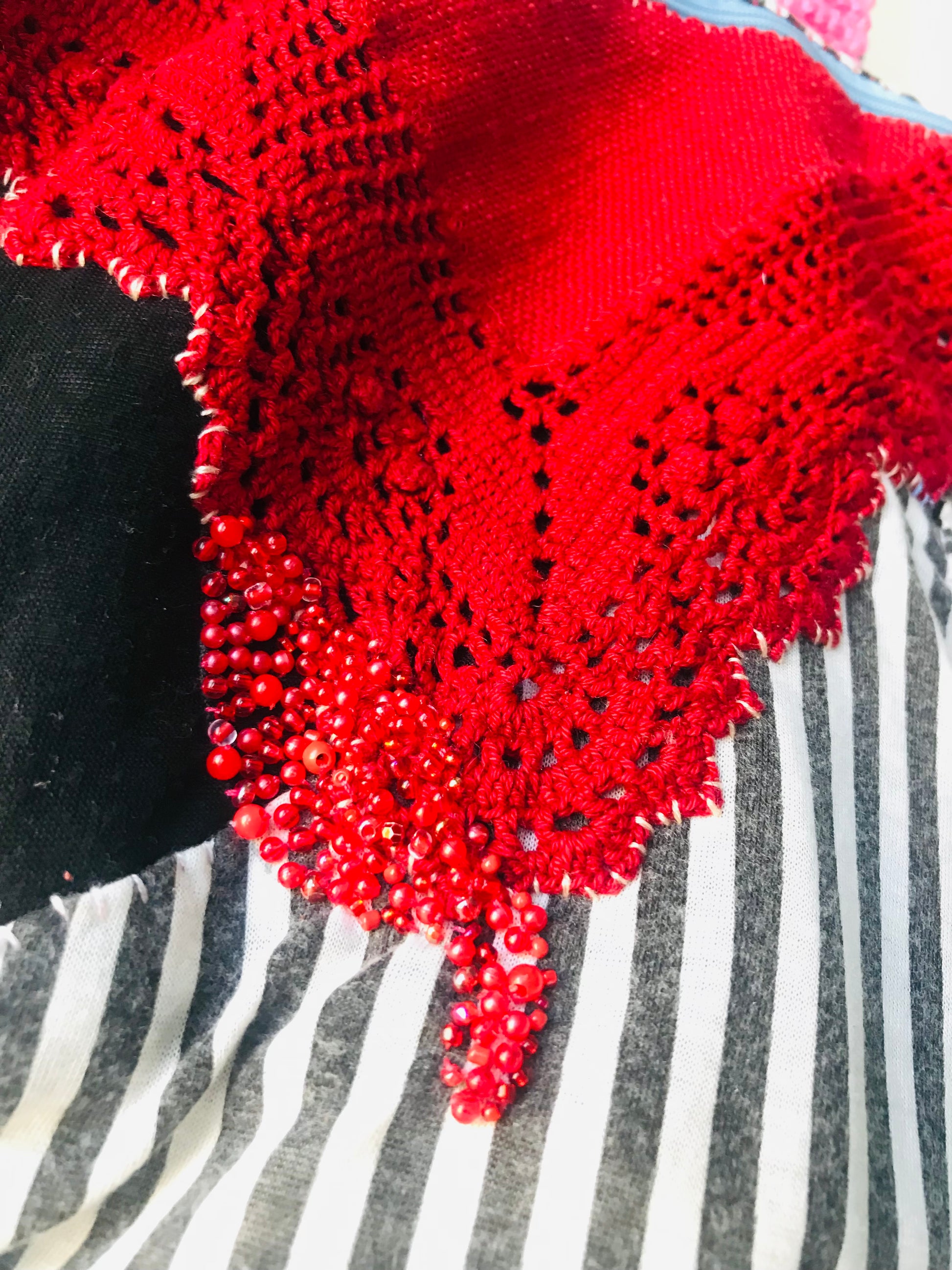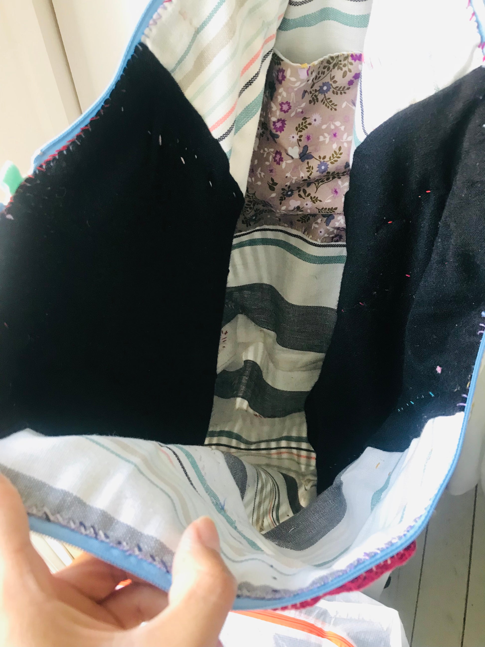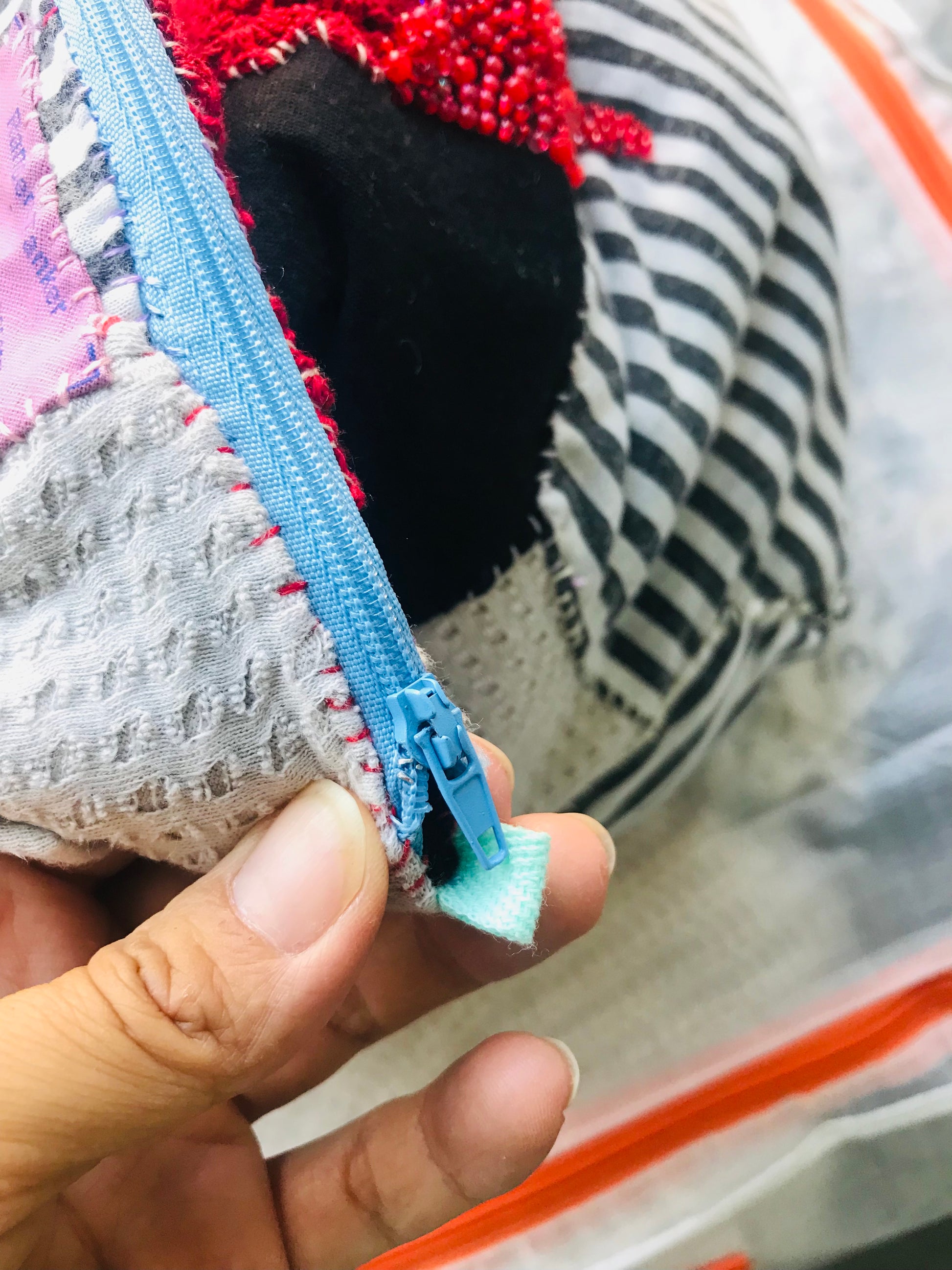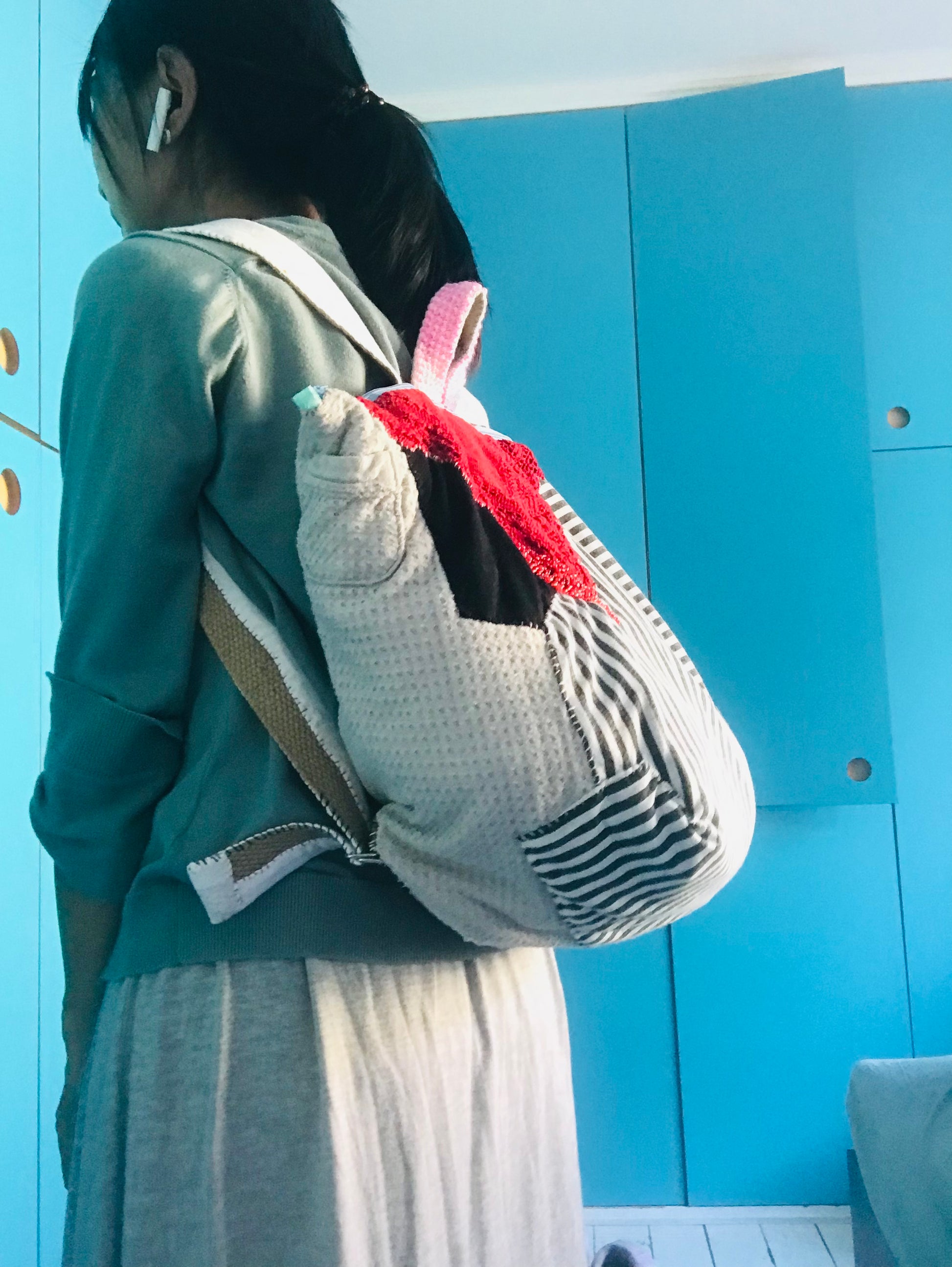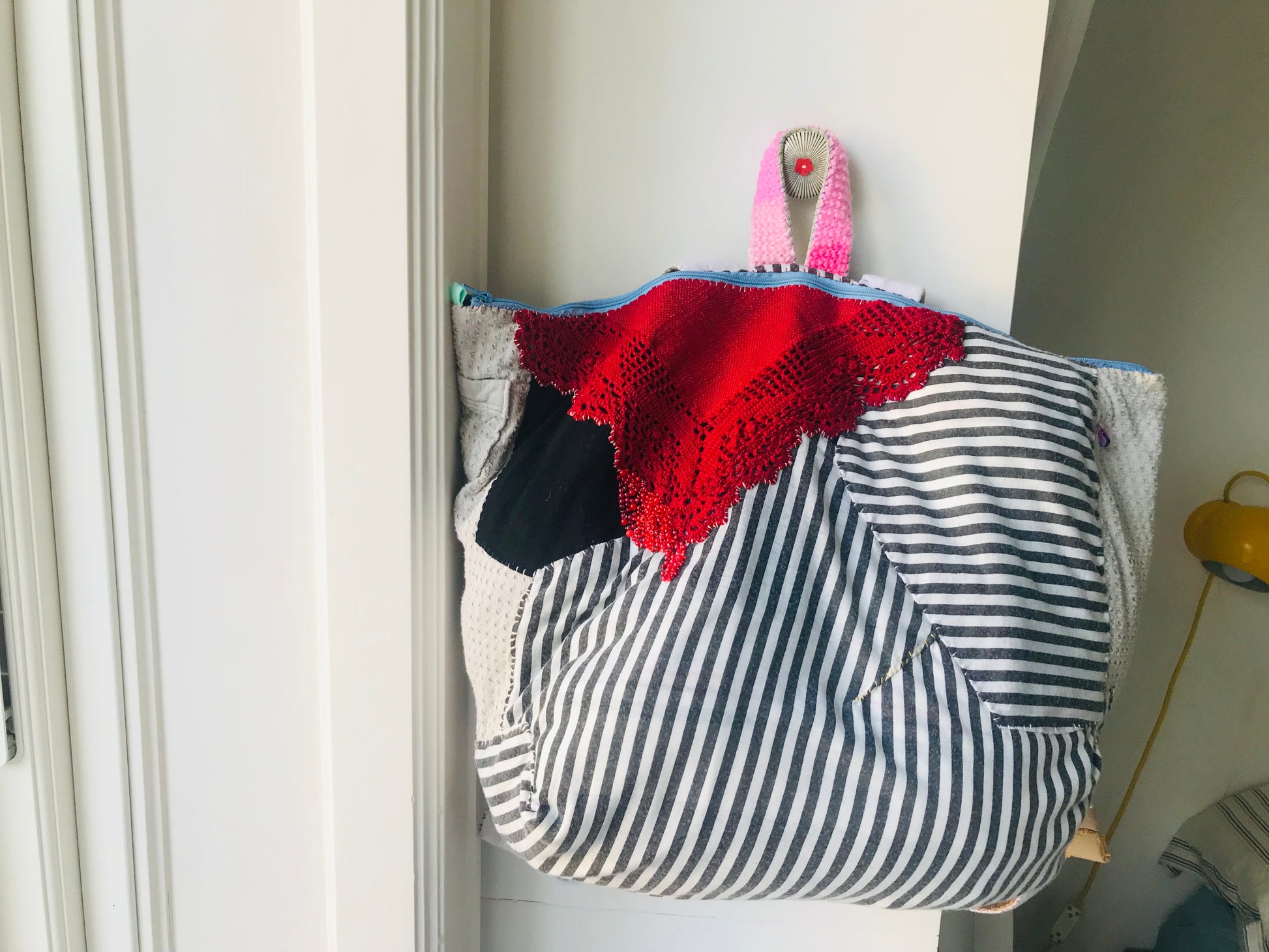 The handle part is Afghan knitted by myself.