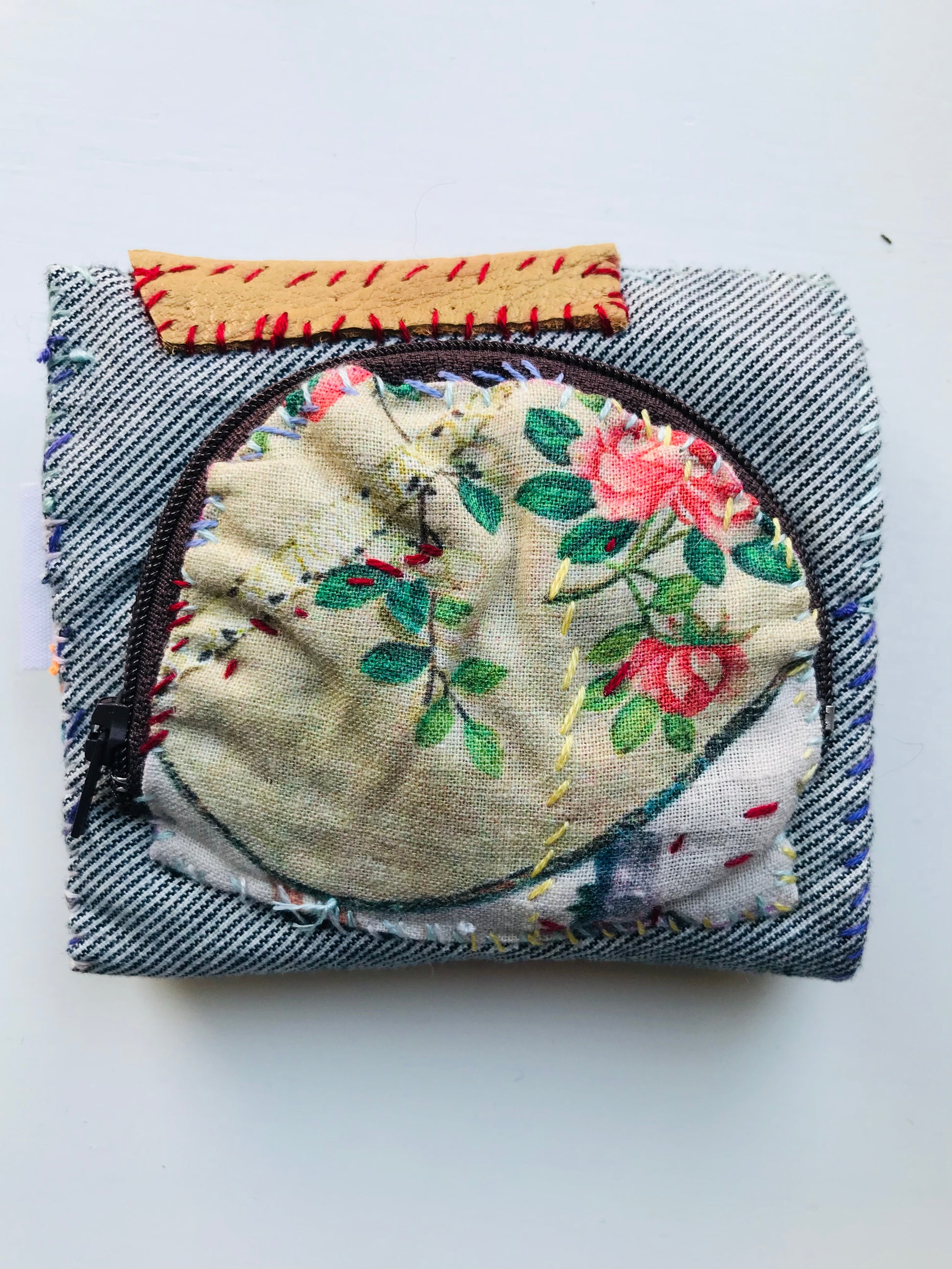財布 布財布 ハンドメイド 手縫い 刺繍 パッチワーク 二つ折り 1637