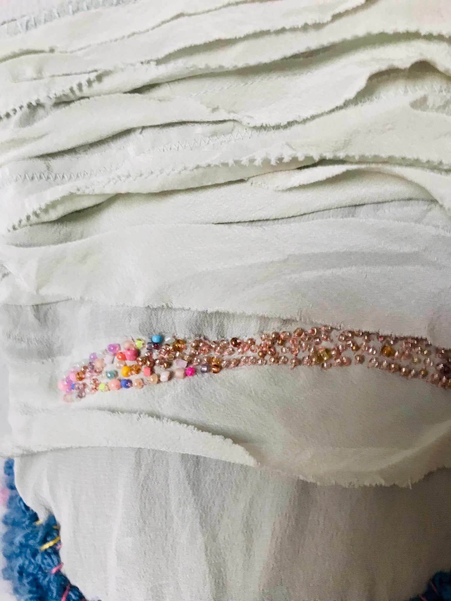 薄いグリーンの生地には淡いビーズが飾られています。