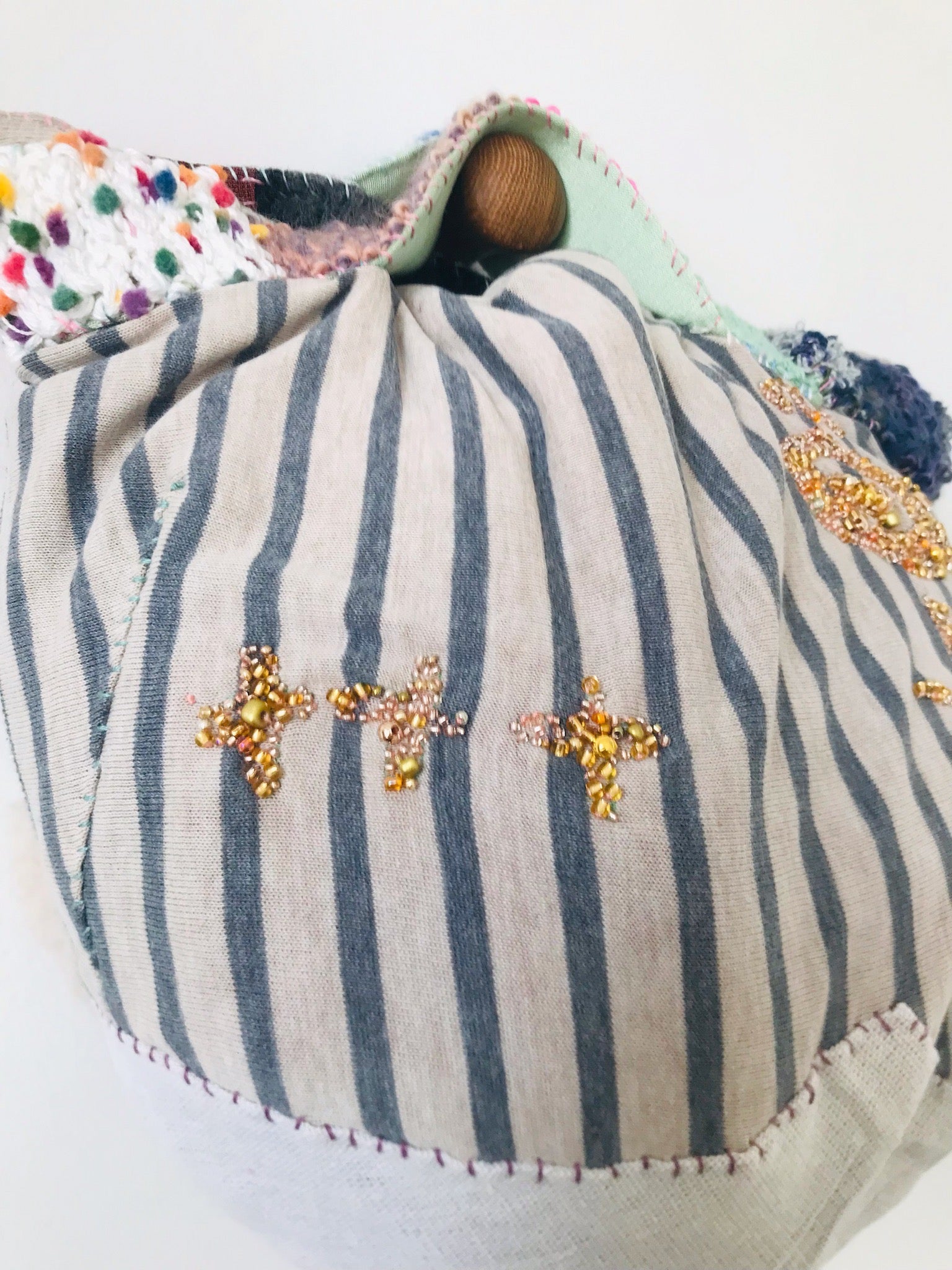 こちらの商品は全ての工程を手縫いと手編みで仕上げたものです。