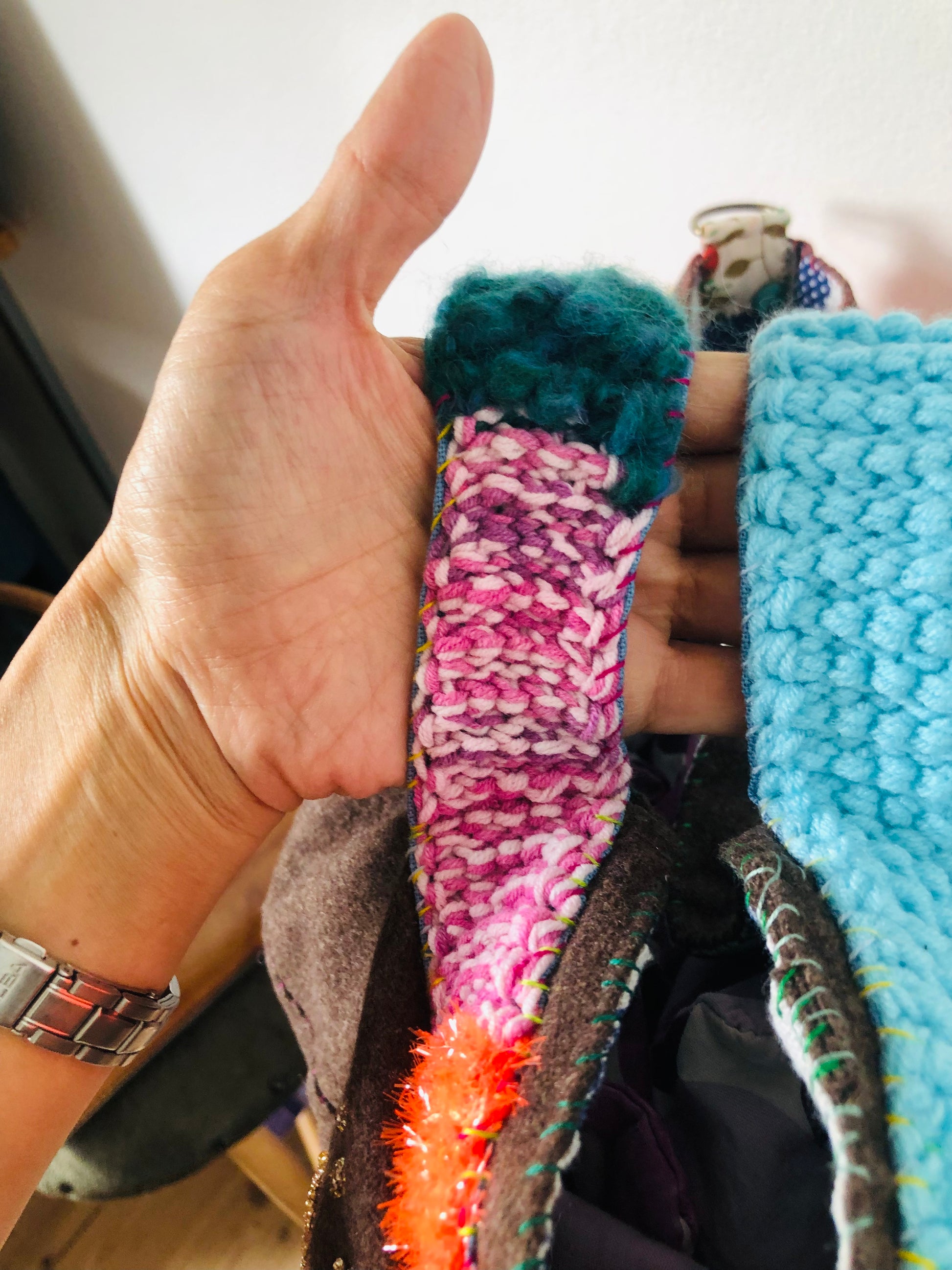 ⭕️持ち手は毛糸でアフガン編みで作りました。