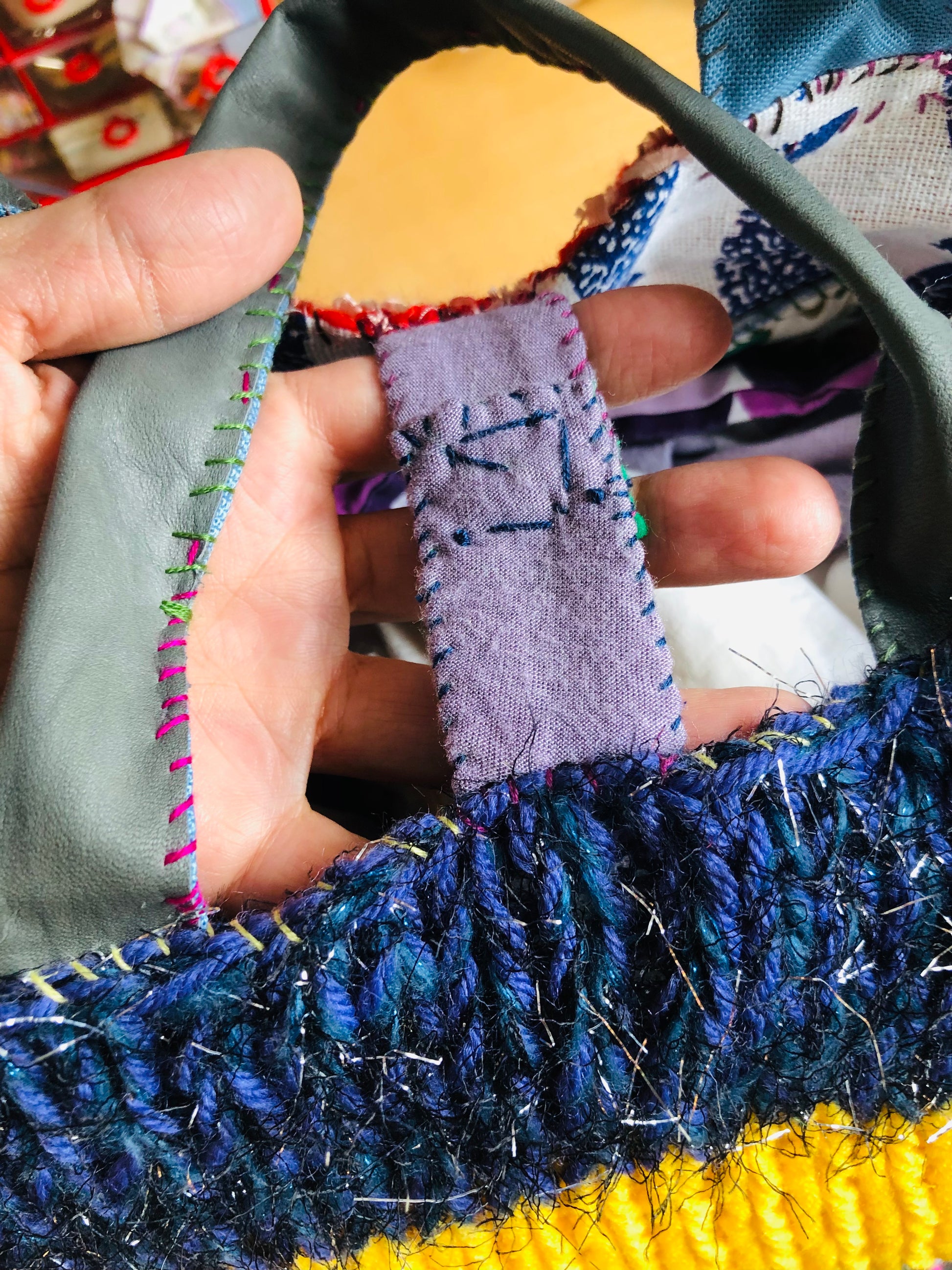 手編みと手縫いでゆっくり仕上げたバッグ。