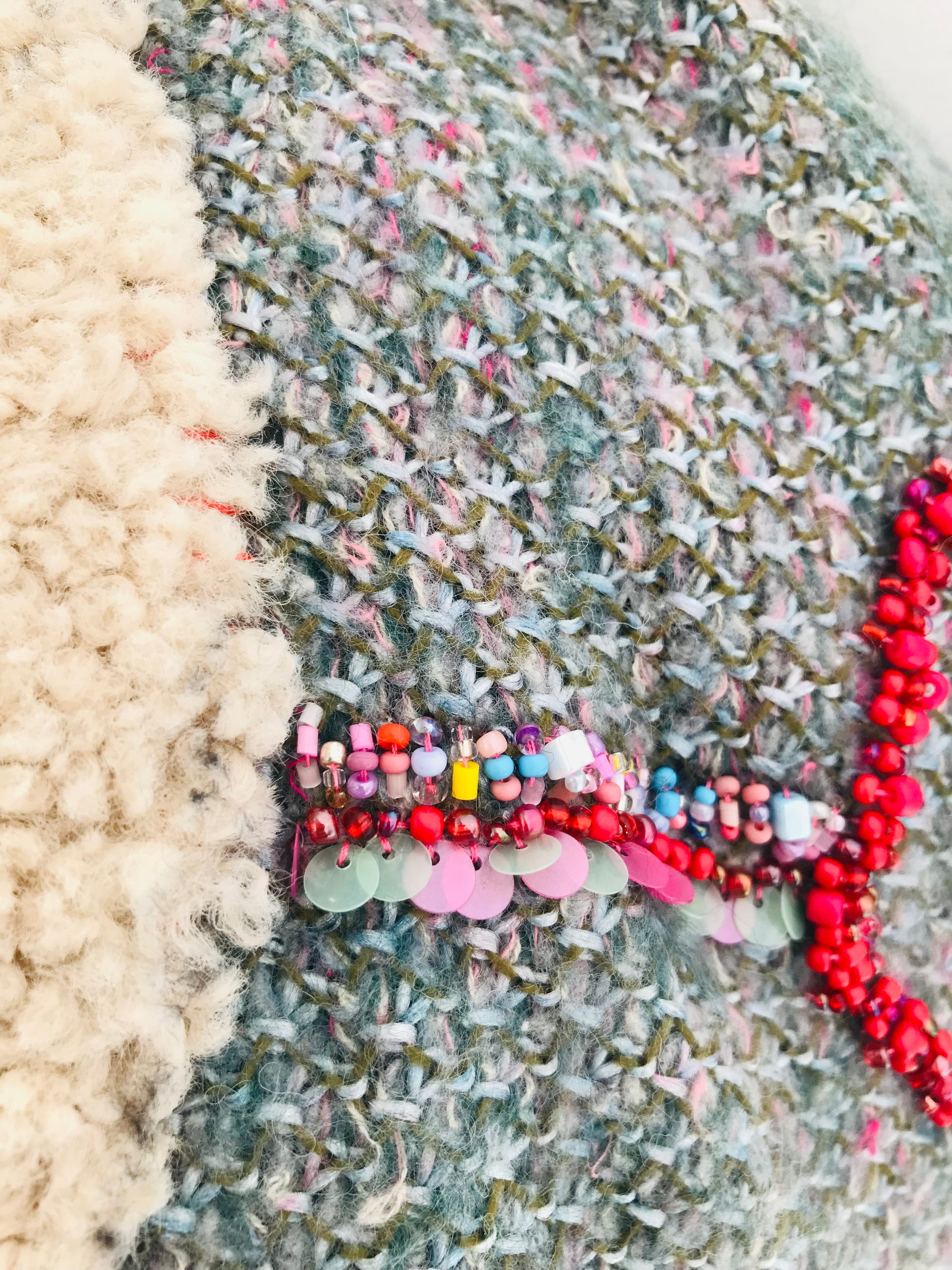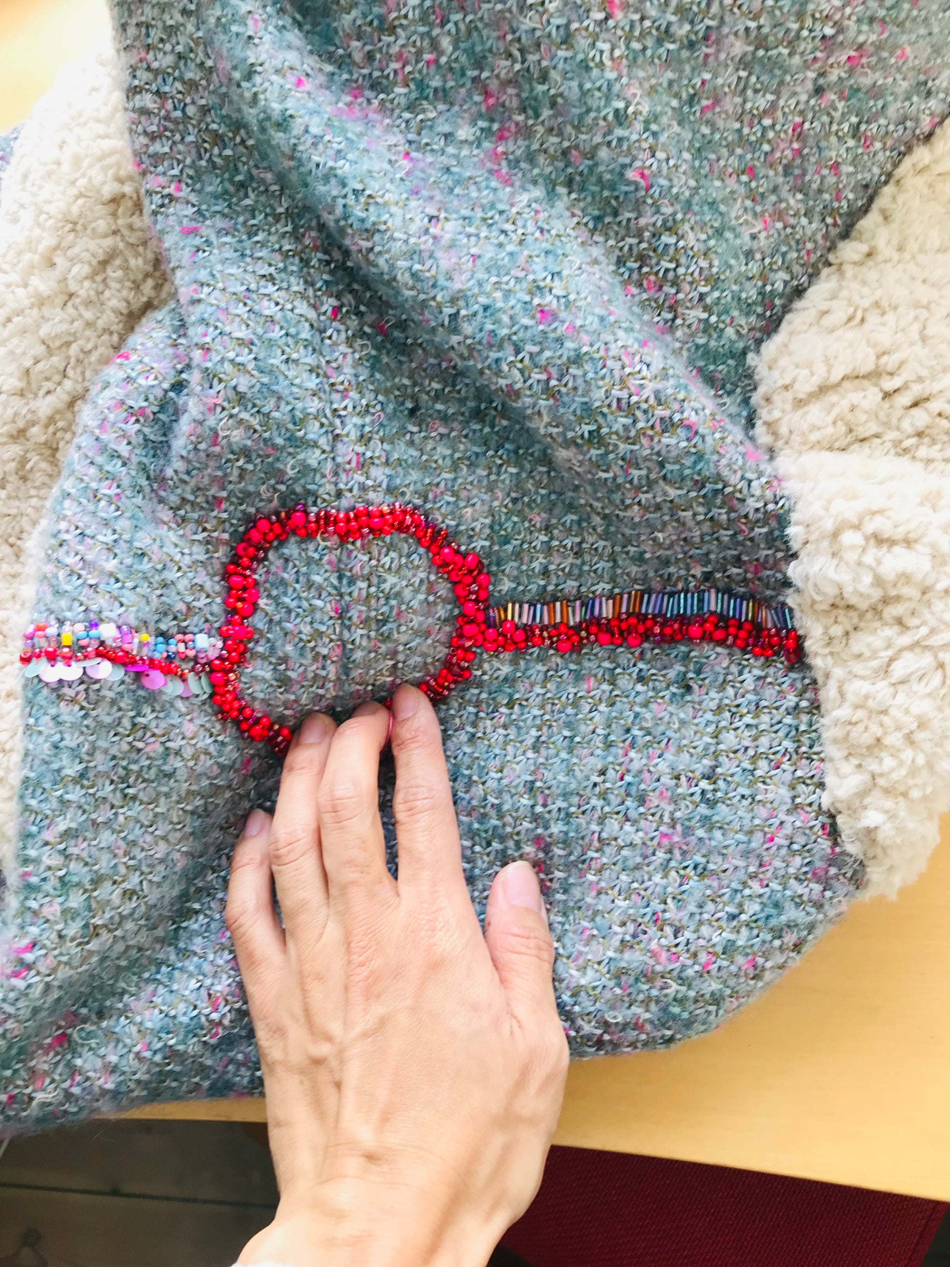 こちらの商品は全ての工程を手縫いと手編みで仕上げたものです。
